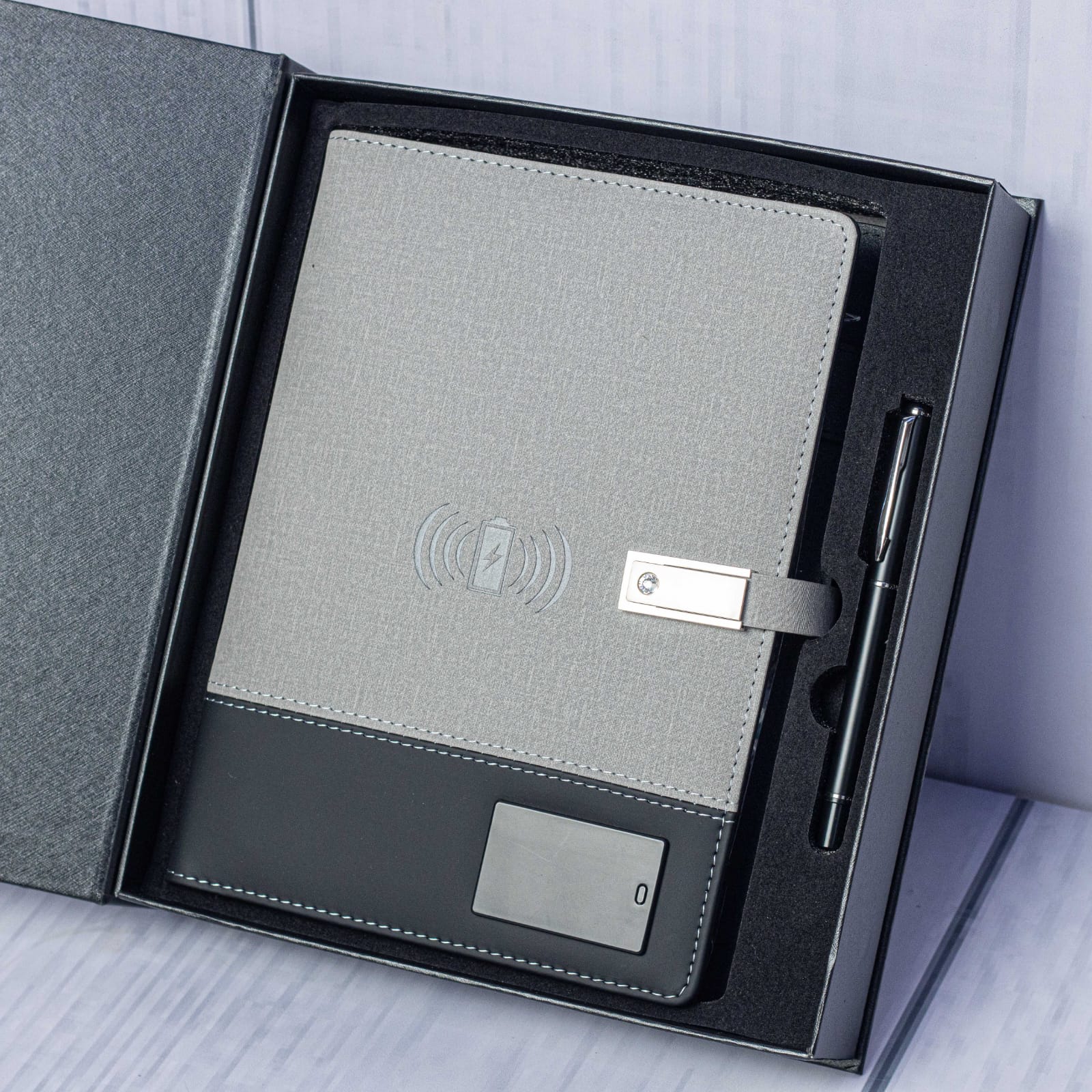 Advanced Smart A5 Notebook Portfolio, With Pendrive, Wireless Charging and Power Bank