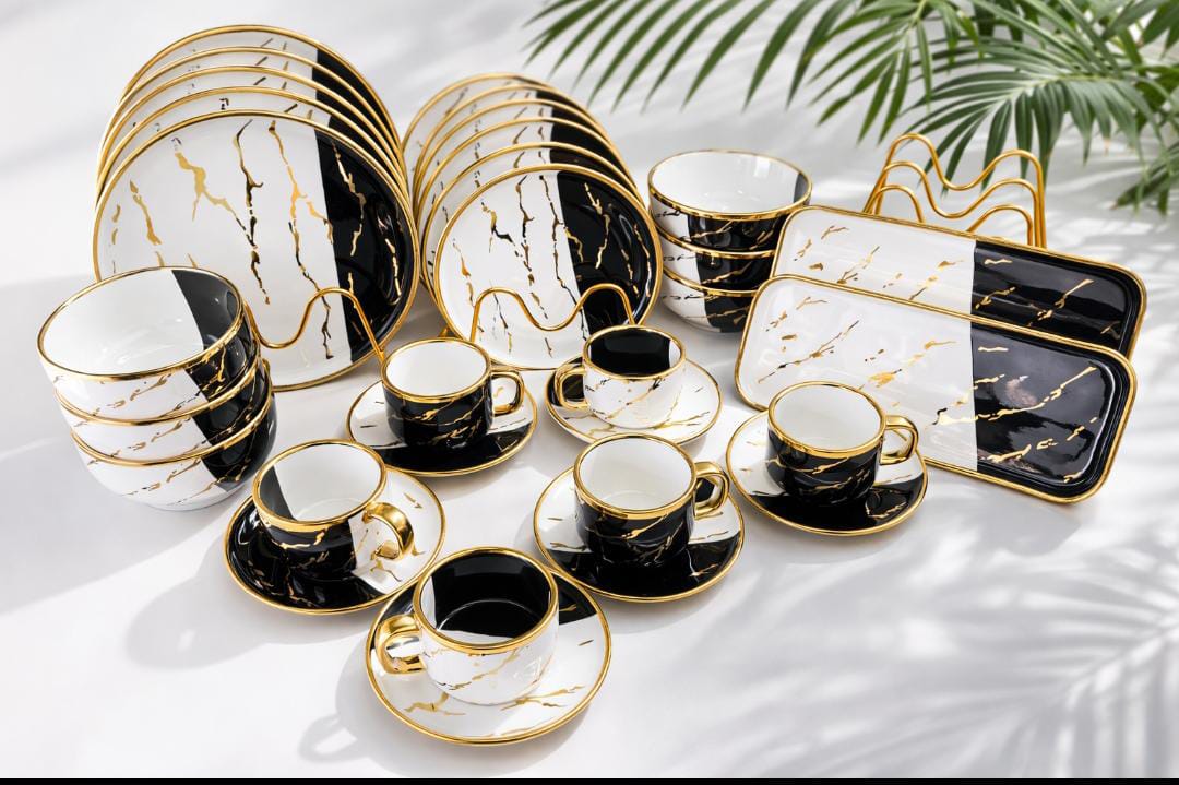 32 pc dinner set Marble green 6 pcs dinner plate 6 pcs sideplates